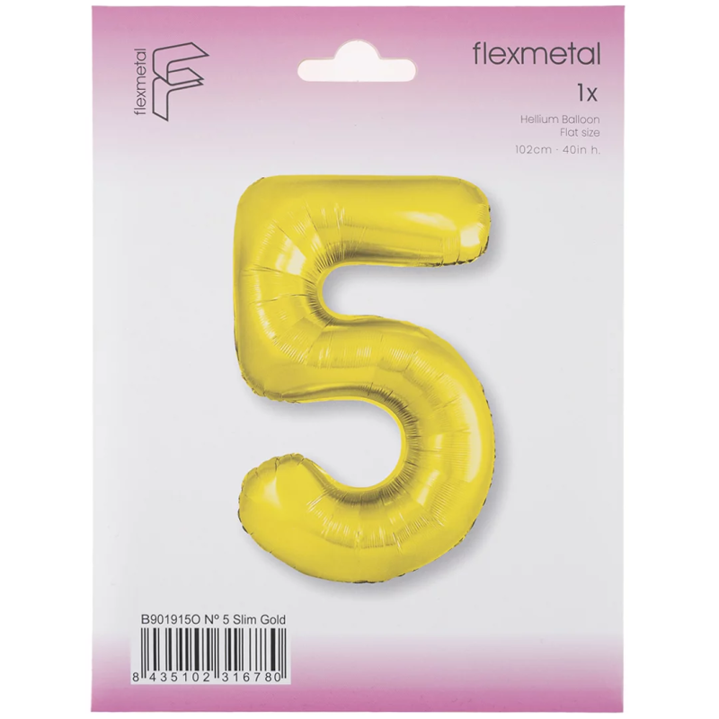 Шар (40''/102 см) Цифра, 5 Slim, Золото, 1 шт. в уп., B901915O