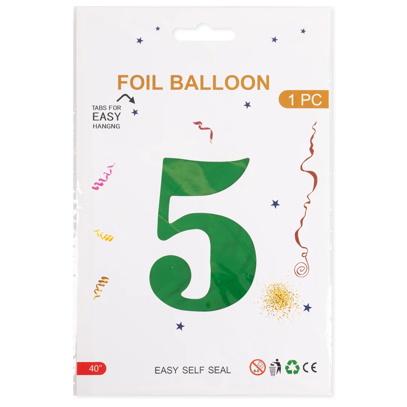 Шар (40''/102 см) Цифра, 5, Зеленый, Металлик, 1 шт. в уп., 27375