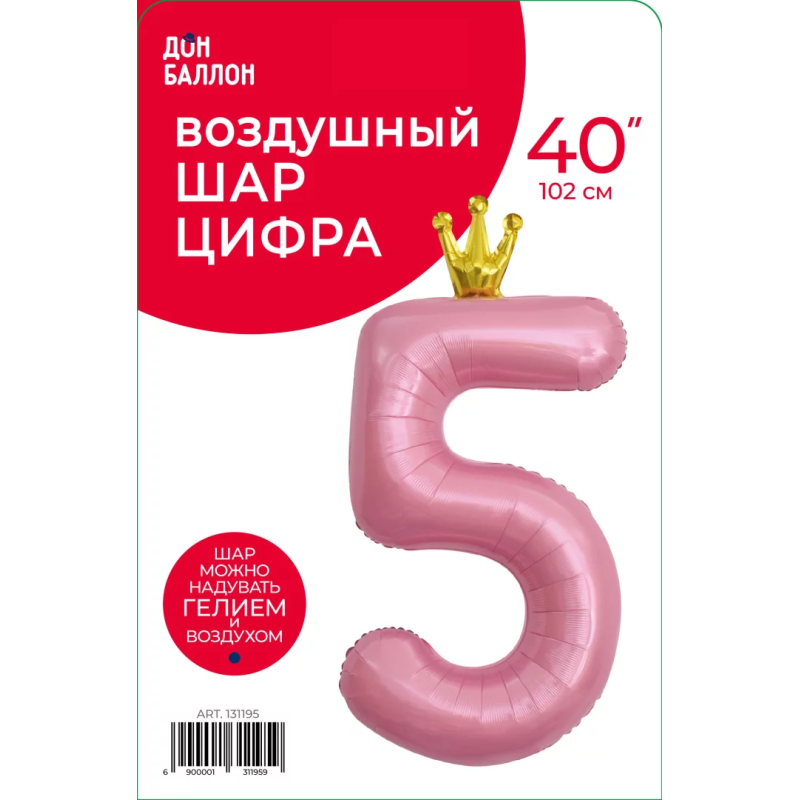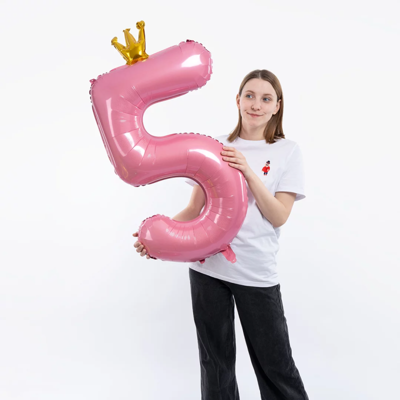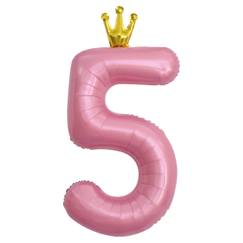 Шар (40''/102 см) Цифра, 5 Золотая корона, Розовый, 1 шт. в уп., 131195