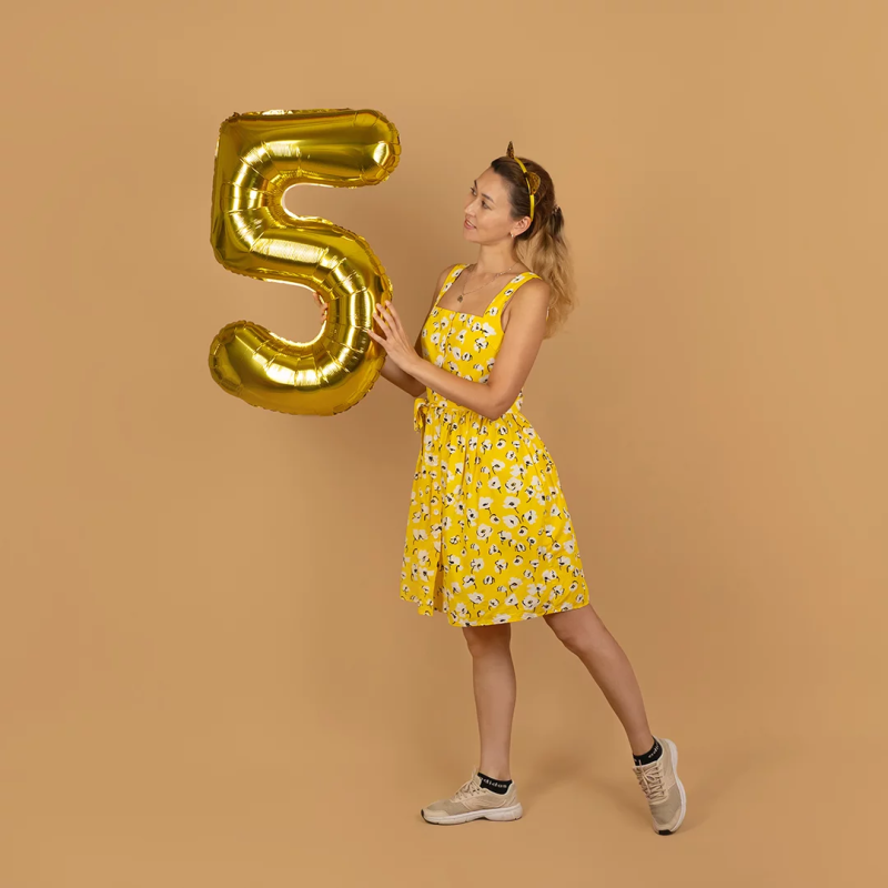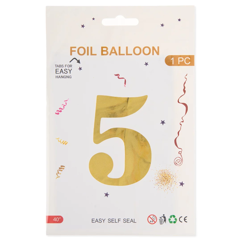 Шар (40''/102 см) Цифра, 5, Золото, Металлик, 1 шт. в уп., 24085