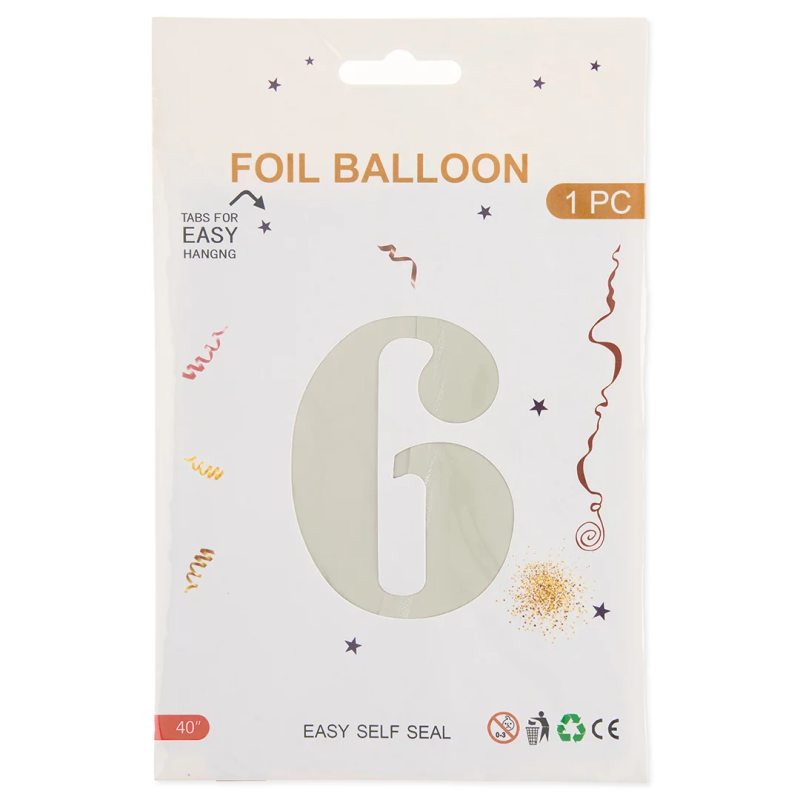 Шар (40''/102 см) Цифра, 6, Белый песок, Сатин, 1 шт. в уп., 27166