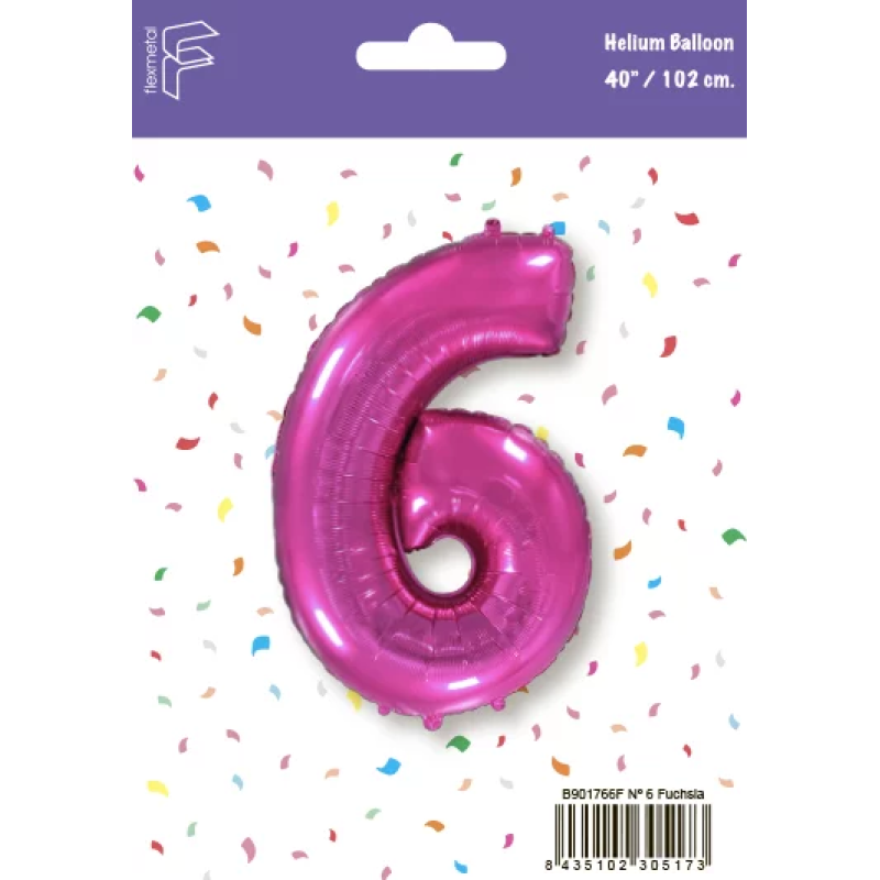 Шар (40''/102 см) Цифра, 6, Фуше, 1 шт. в уп., B901766F