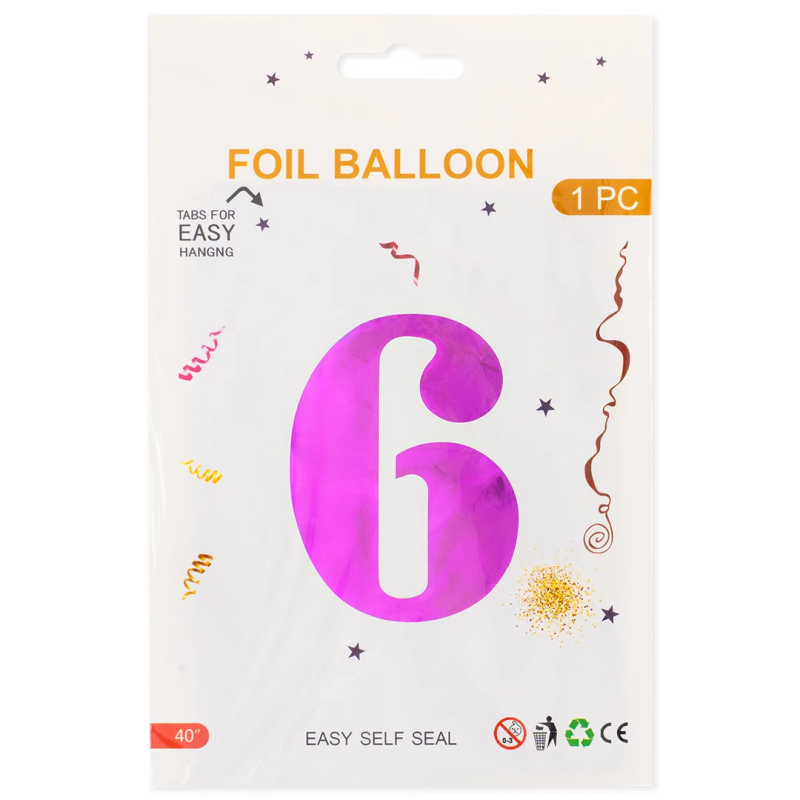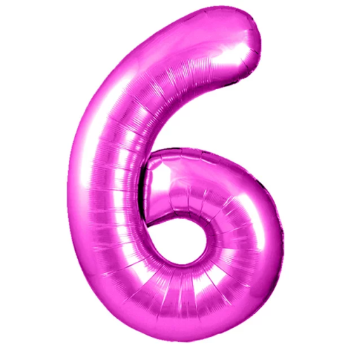 Шар (40''/102 см) Цифра, 6, Фуше, Металлик, 1 шт. в уп., 24226