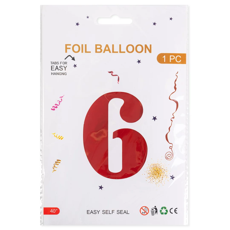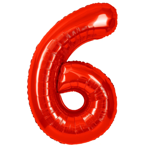 Шар (40''/102 см) Цифра, 6, Красный, Металлик, 1 шт. в уп., 27366