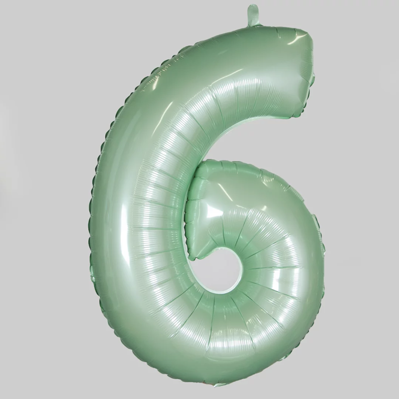 Шар (40''/102 см) Цифра, 6, Мятный, Макарунс, 1 шт., 901766PM