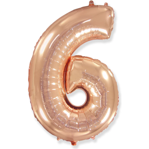 Шар (40''/102 см) Цифра, 6, Розовое Золото, 1 шт., 901766RG