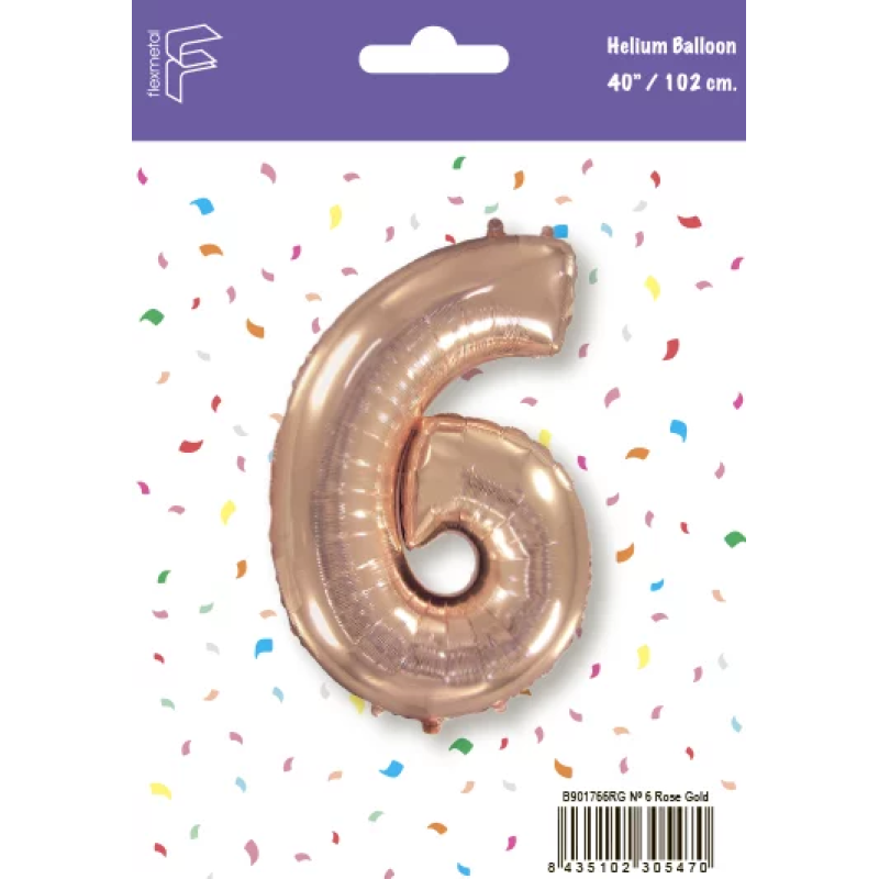 Шар (40''/102 см) Цифра, 6, Розовое Золото, 1 шт. в уп., B901766RG