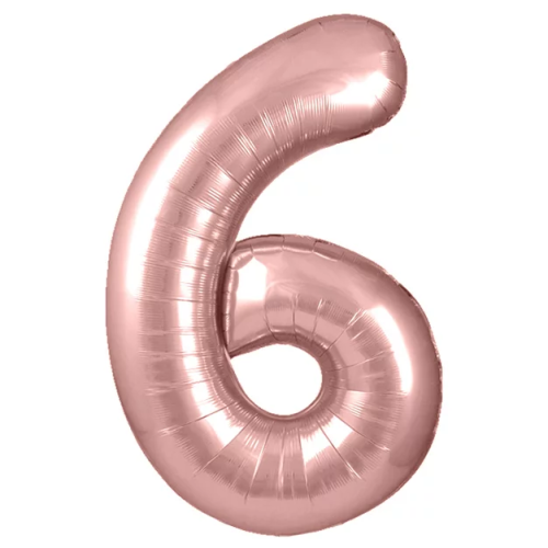 Шар (40''/102 см) Цифра, 6, Розовое Золото, Металлик, 1 шт. в уп., 24246