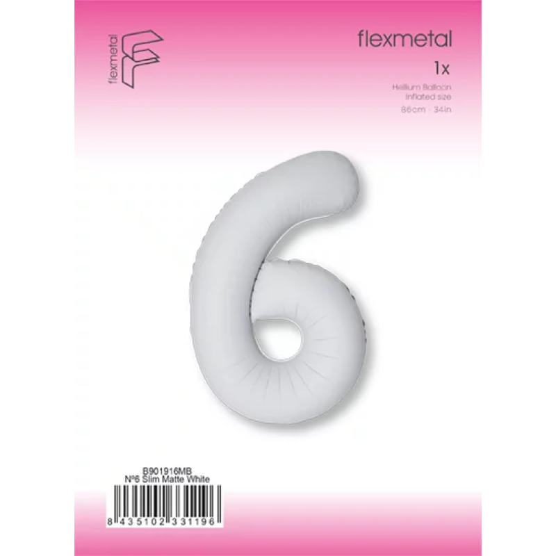 Шар (40''/102 см) Цифра, 6 Slim, Белый, Матовый, 1 шт. в уп., B901916MB