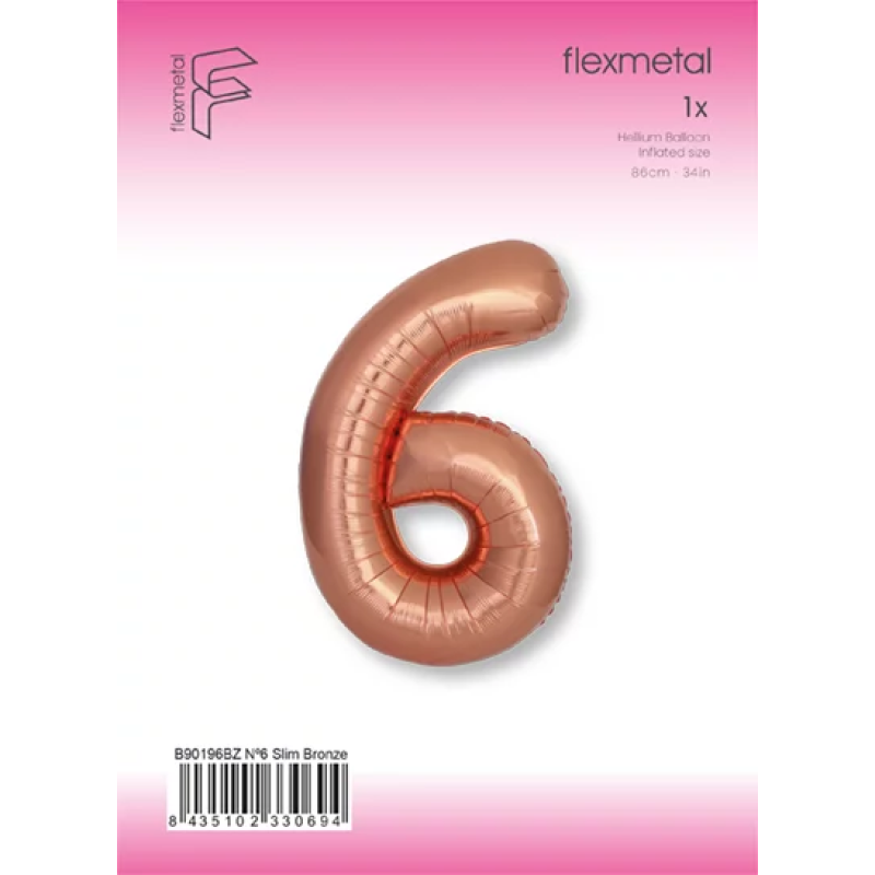 Шар (40''/102 см) Цифра, 6 Slim, Бронза, Металлик, 1 шт. в уп., B901916BZ