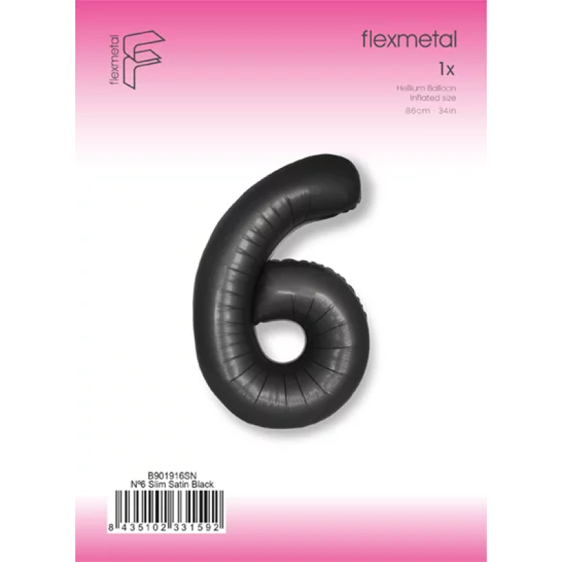 Шар (40''/102 см) Цифра, 6 Slim, Черный, Сатин, 1 шт. в уп., B901916SN