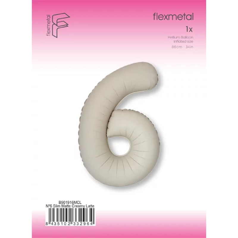 Шар (40''/102 см) Цифра, 6 Slim, Кремовый Латте, Матовый, 1 шт. в уп., B901916MCL