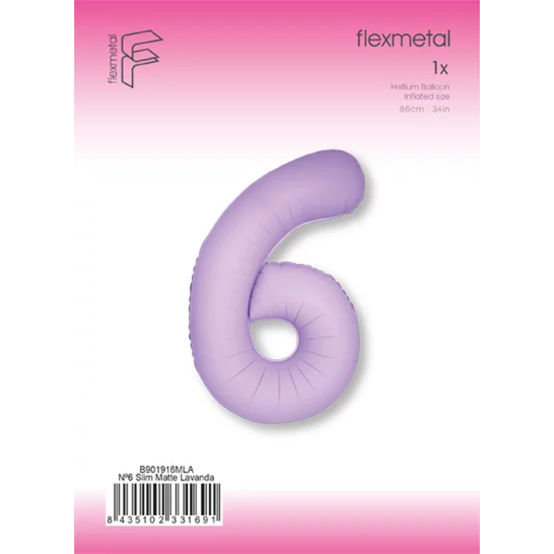 Шар (40''/102 см) Цифра, 6 Slim, Лаванда, Матовый, 1 шт. в уп., B901916MLA