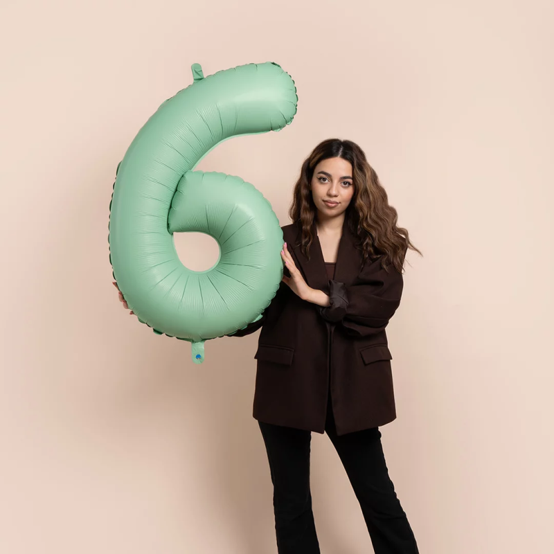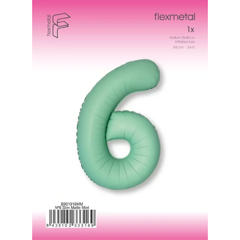 Шар (40''/102 см) Цифра, 6 Slim, Мятный, Матовый, 1 шт. в уп., B901916MM