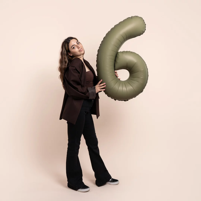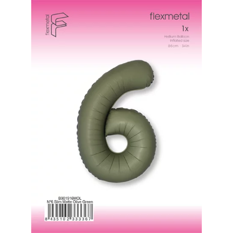 Шар (40''/102 см) Цифра, 6 Slim, Оливковый, Матовый, 1 шт. в уп., B901916MOL