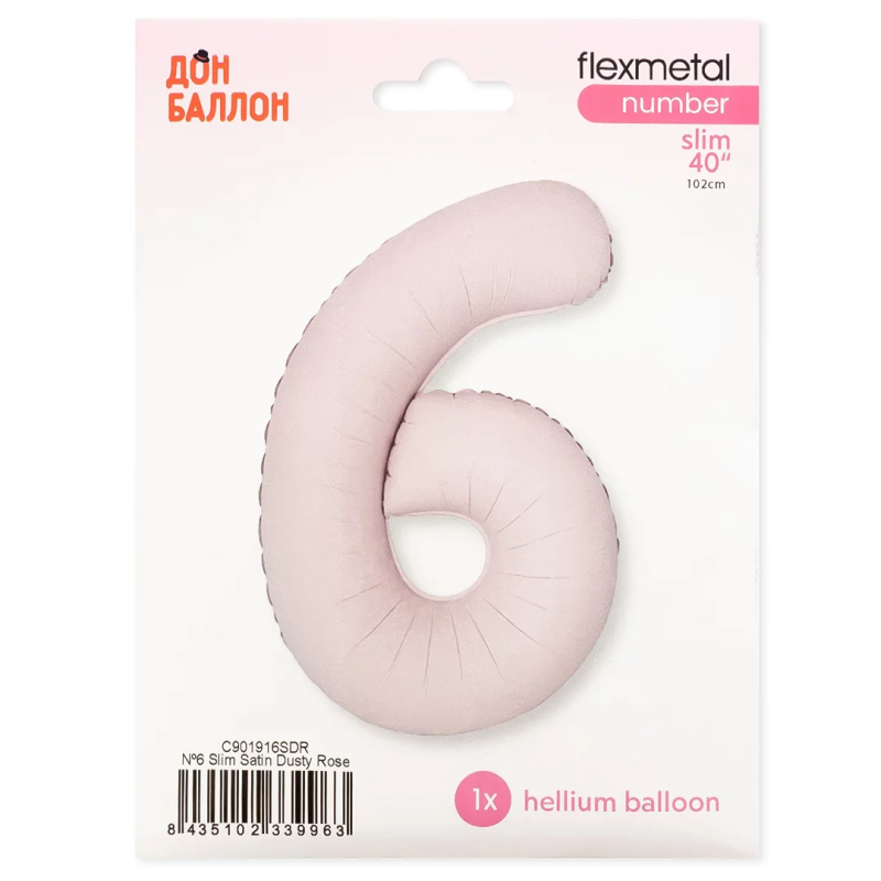 Шар (40''/102 см) Цифра, 6 Slim, Пыльная роза, Сатин, 1 шт. в уп., C901916SDR