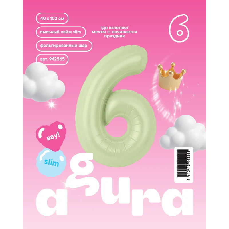 | Линейка | Agura Шар (40''/102 см) Цифра, Slim, Пыльный лайм |
