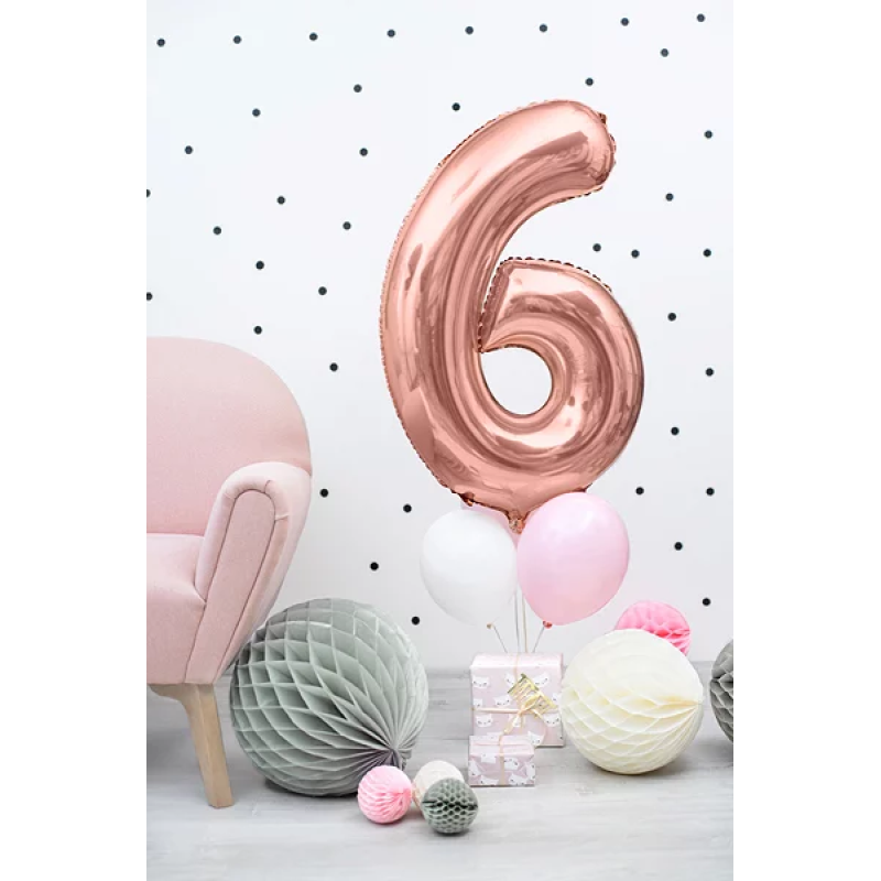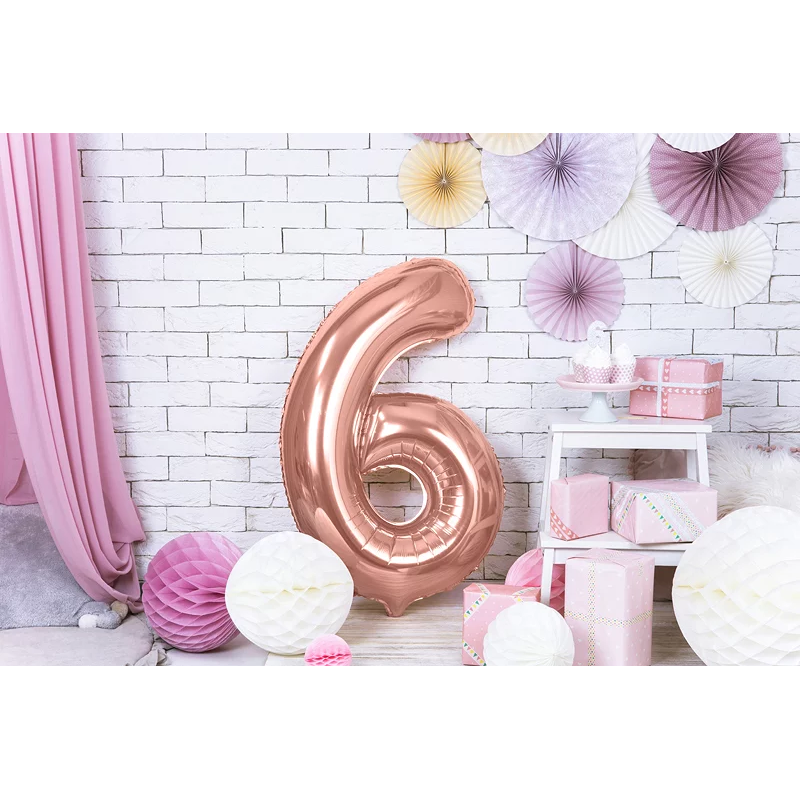 Шар (40''/102 см) Цифра, 6 Slim, Розовое Золото, 1 шт. в уп., 755501