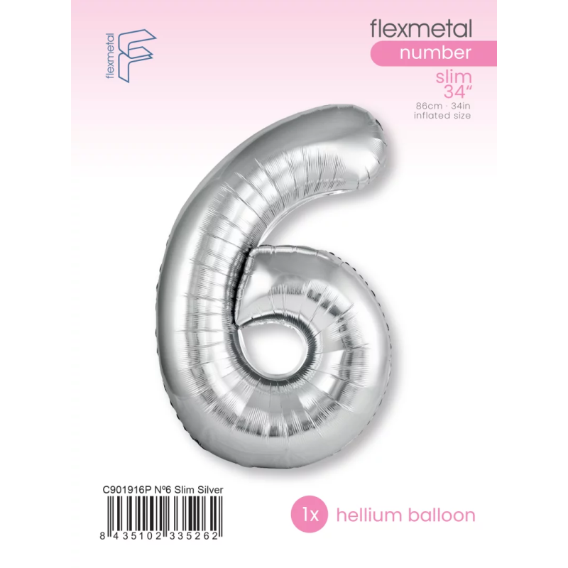Шар (40''/102 см) Цифра, 6 Slim, Серебро, 1 шт. в уп., C901916P