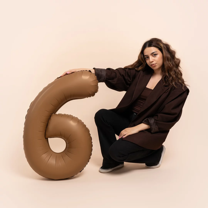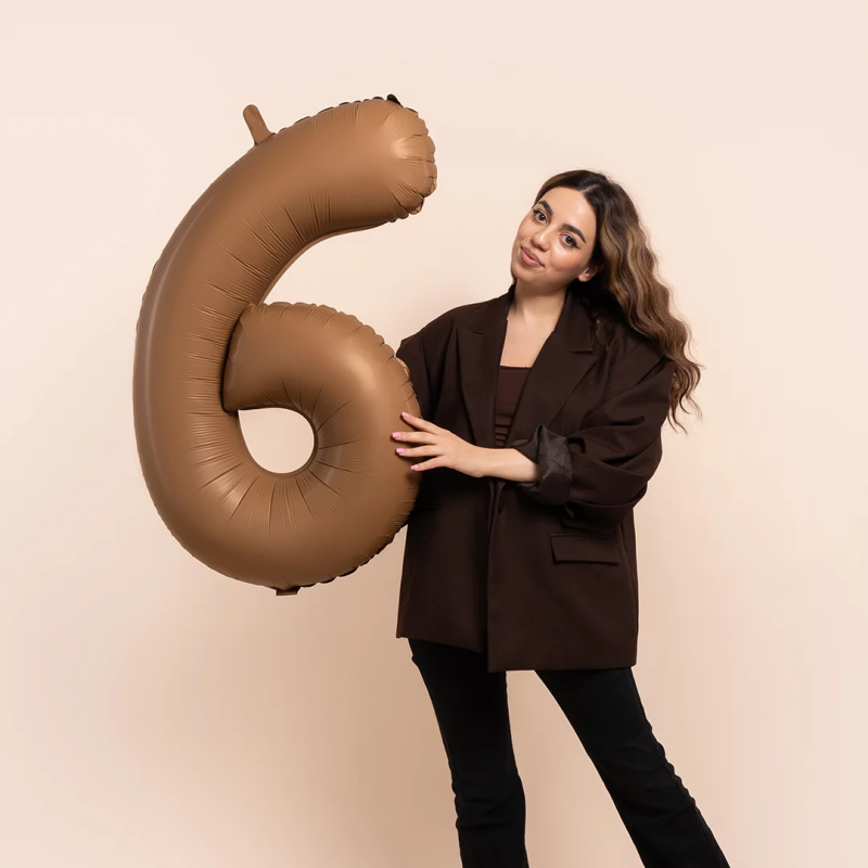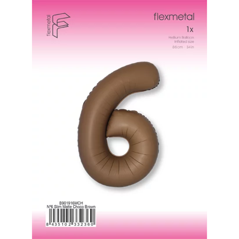Шар (40''/102 см) Цифра, 6 Slim, Шоколад, Матовый, 1 шт. в уп., B901916MCH