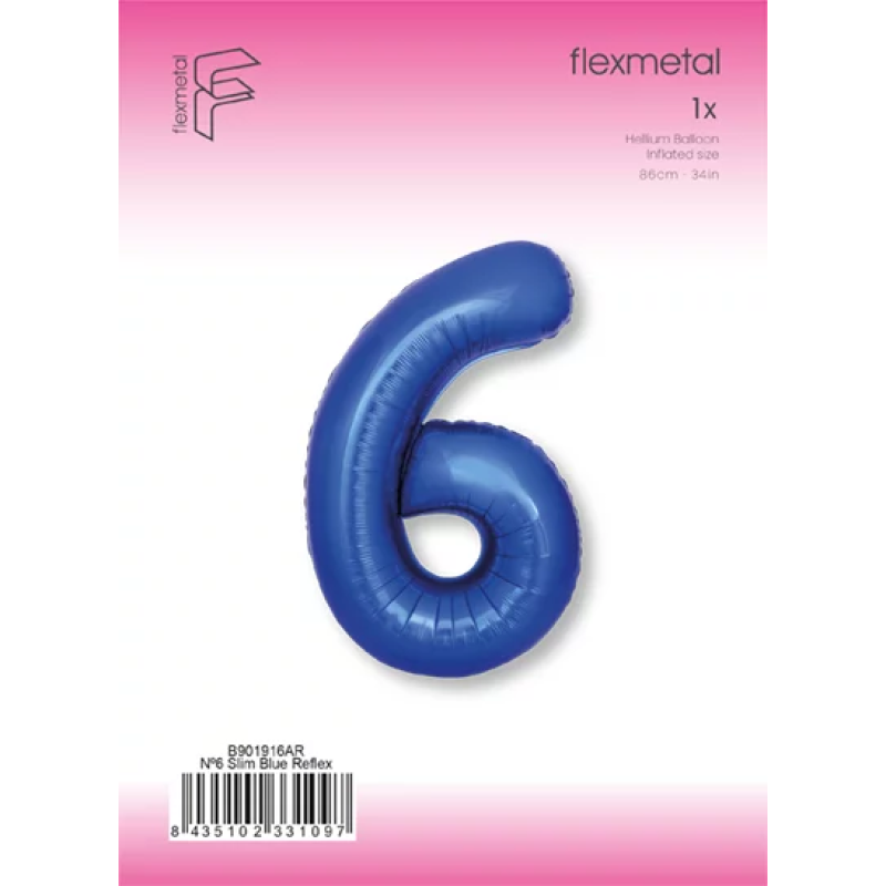 Шар (40''/102 см) Цифра, 6 Slim, Синий хром, Металлик, 1 шт. в уп., B901916AR