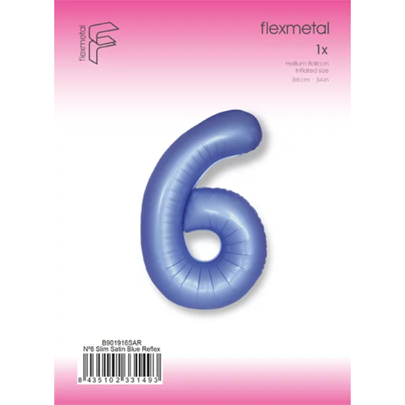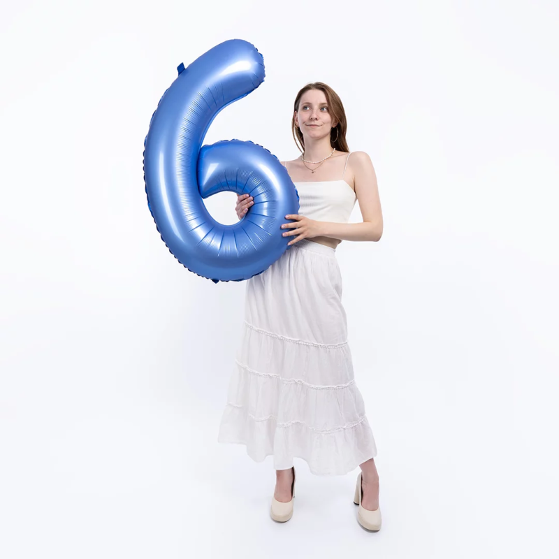 Шар (40''/102 см) Цифра, 6 Slim, Синий хром, Сатин, 1 шт. в уп., B901916SAR
