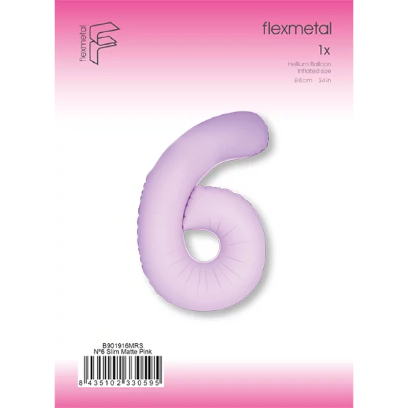 Шар (40''/102 см) Цифра, 6 Slim, Светло-розовый, Матовый, 1 шт. в уп., B901916MRS