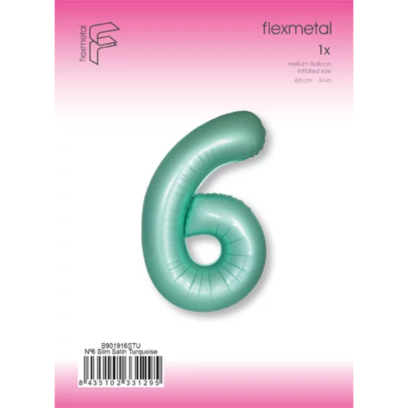 Шар (40''/102 см) Цифра, 6 Slim, Тиффани, Сатин, 1 шт. в уп., B901916STU
