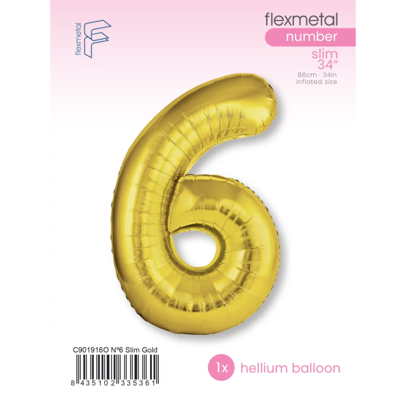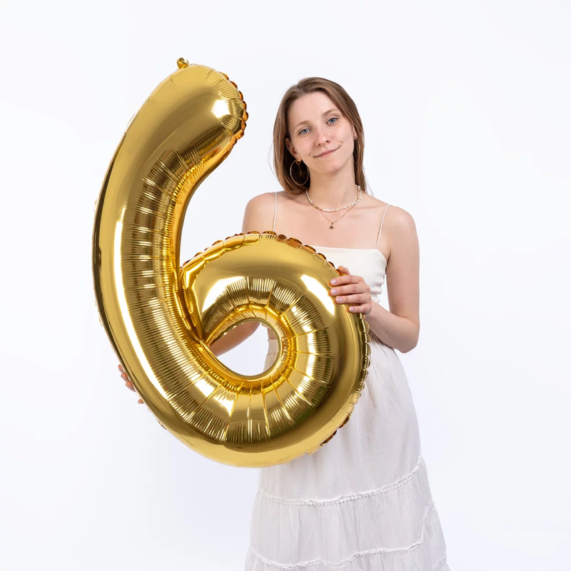 Шар (40''/102 см) Цифра, 6 Slim, Золото, 1 шт. в уп., C901916O