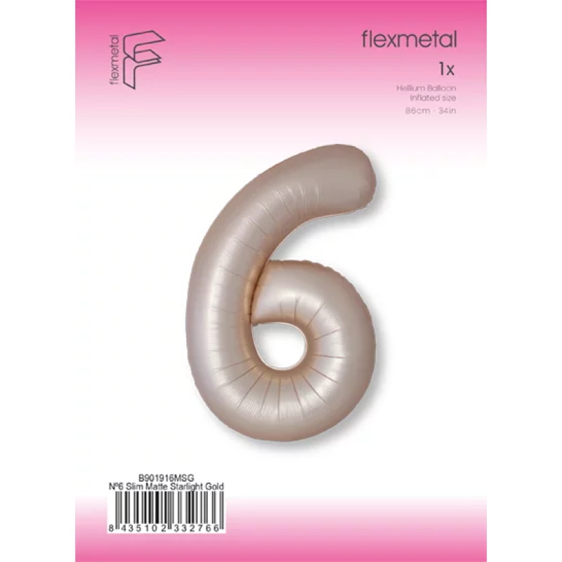 Шар (40''/102 см) Цифра, 6 Slim, Звездное Золото, Матовый, 1 шт. в уп., B901916MSG