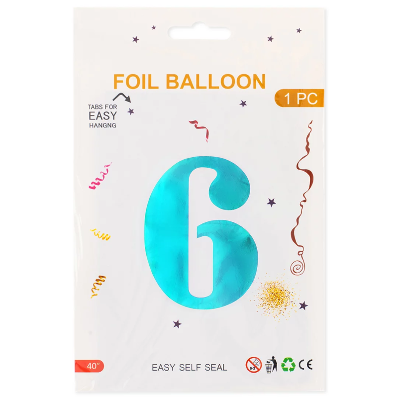 Шар (40''/102 см) Цифра, 6, Тиффани, Металлик, 1 шт. в уп., 24236