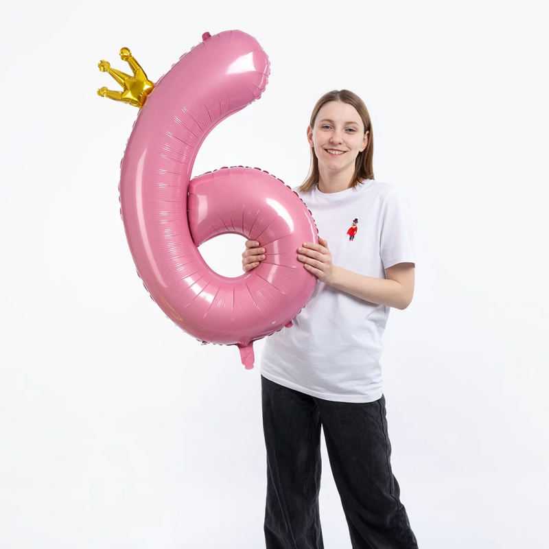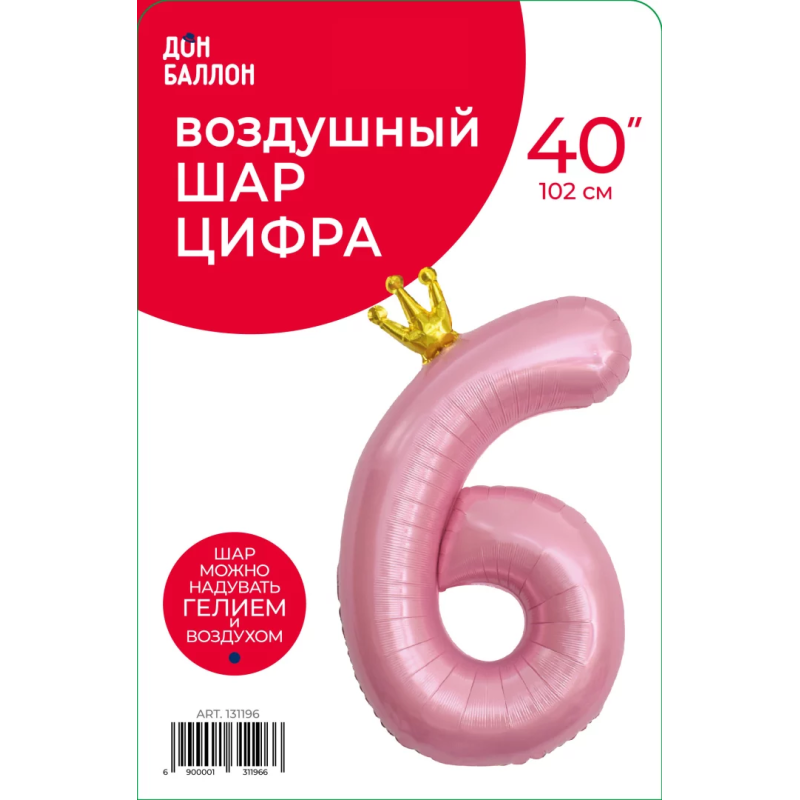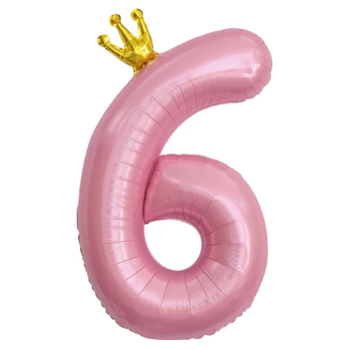 Шар (40''/102 см) Цифра, 6 Золотая корона, Розовый, 1 шт. в уп., 131196