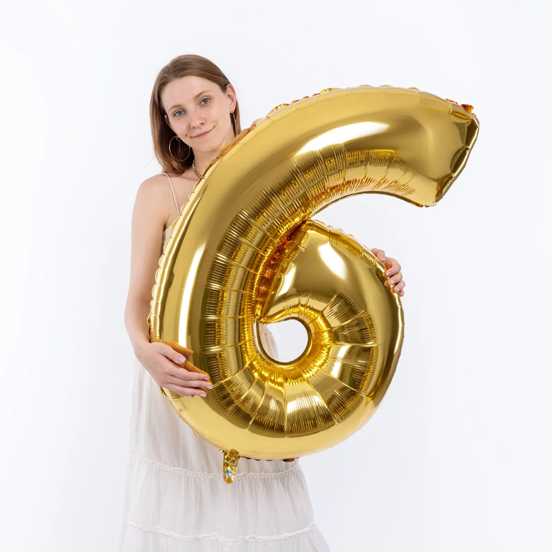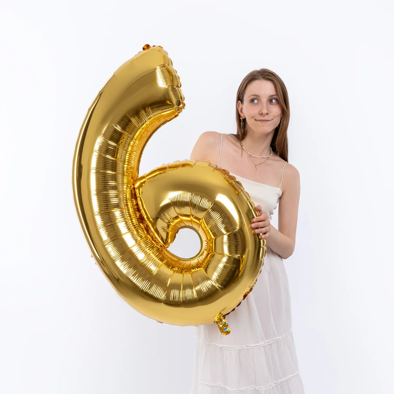 Шар (40''/102 см) Цифра, 6, Золото, 1 шт., 901766O