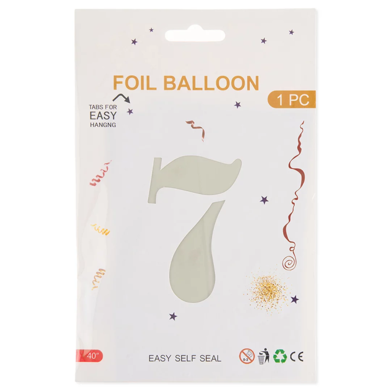Шар (40''/102 см) Цифра, 7, Белый песок, Сатин, 1 шт. в уп., 27167
