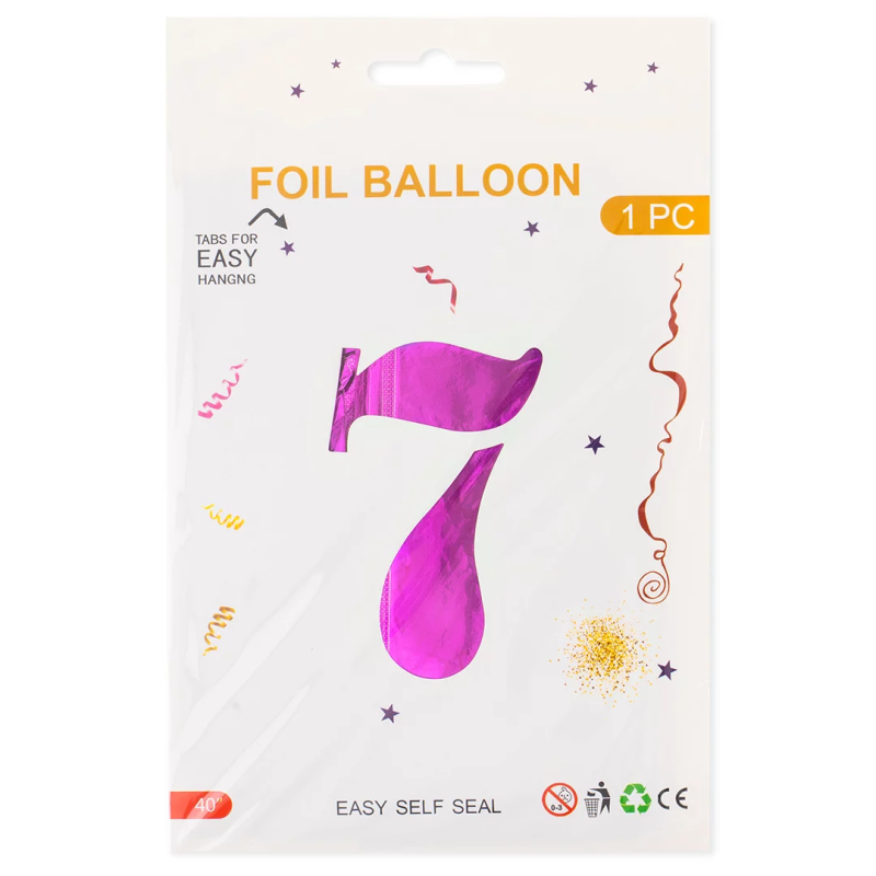 Шар (40''/102 см) Цифра, 7, Фуше, Металлик, 1 шт. в уп., 24227