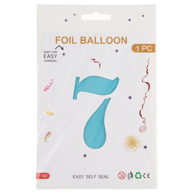 Шар (40''/102 см) Цифра, 7, Голубой, Матовый, 1 шт. в уп., 24117