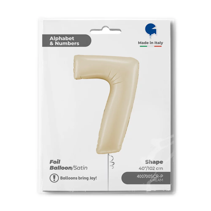 Шар (40''/102 см) Цифра, 7, Кремовый, Сатин, 1 шт. в уп., 400700SCR-P