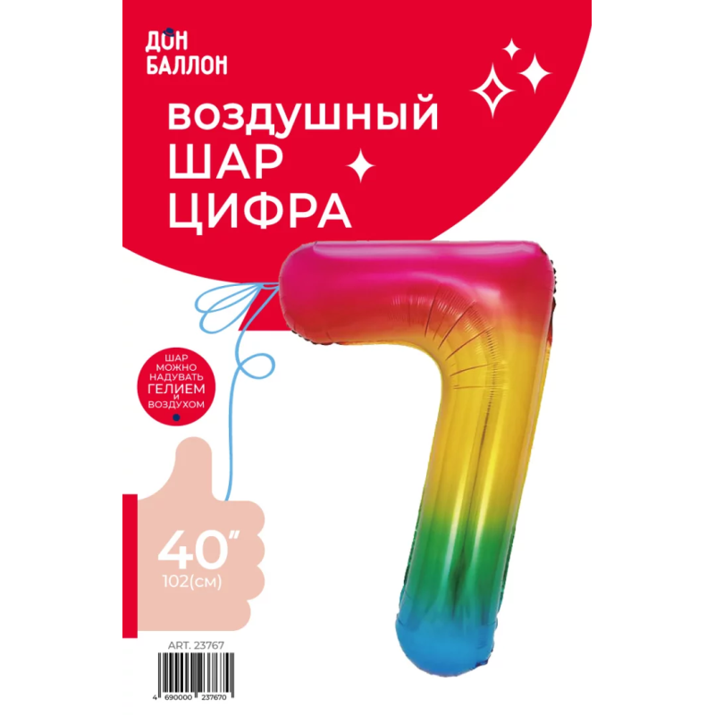 | Линейка | Falali Шар (40''/102 см) Цифра, Радужный, Градиент |