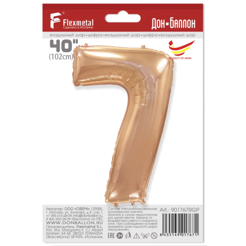 Шар (40''/102 см) Цифра, 7, Розовое Золото, 1 шт. в уп., 901767RGP