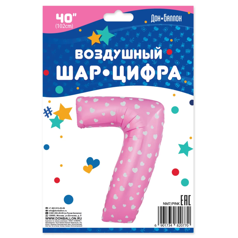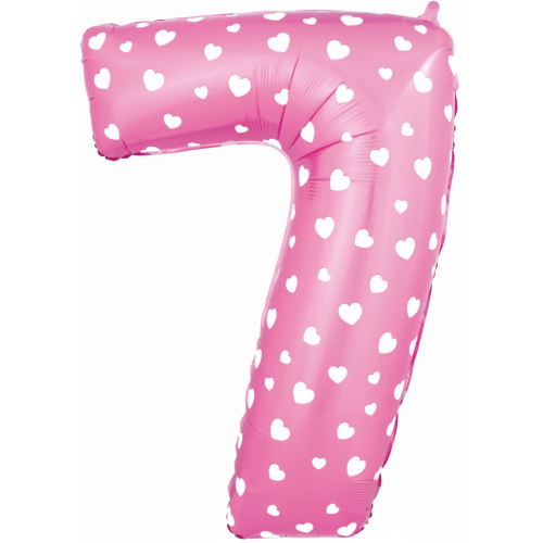 Шар (40''/102 см) Цифра, 7 Сердечки, Розовый, 1 шт. в уп., NMP7/PINK/V