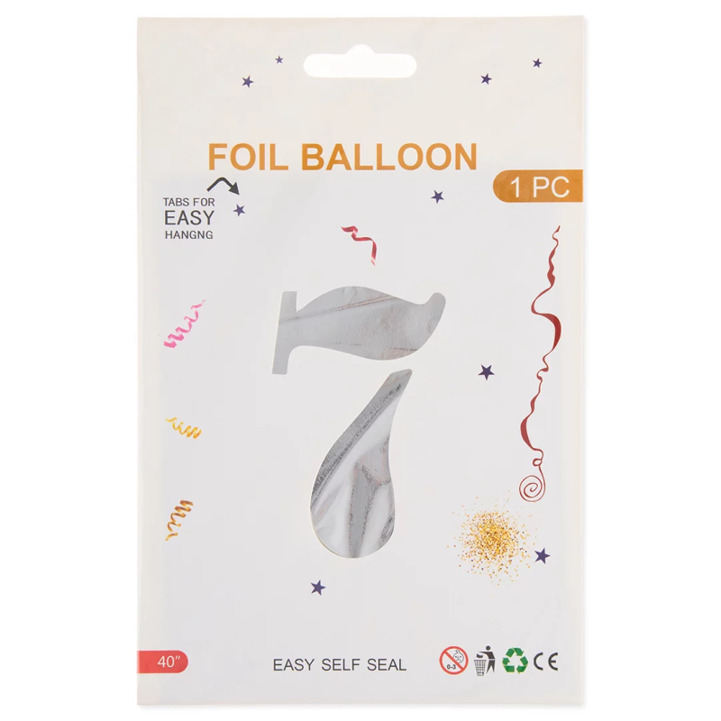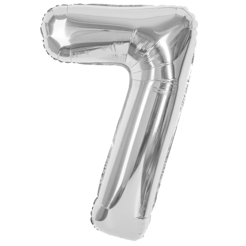 Шар (40''/102 см) Цифра, 7, Серебро, Металлик, 1 шт. в уп., 24097