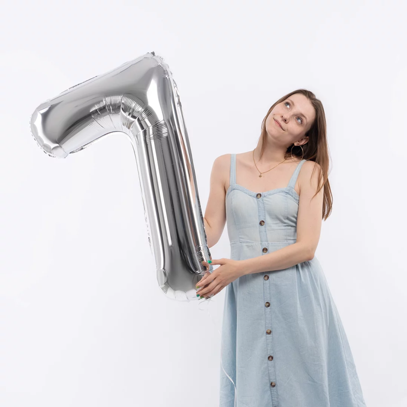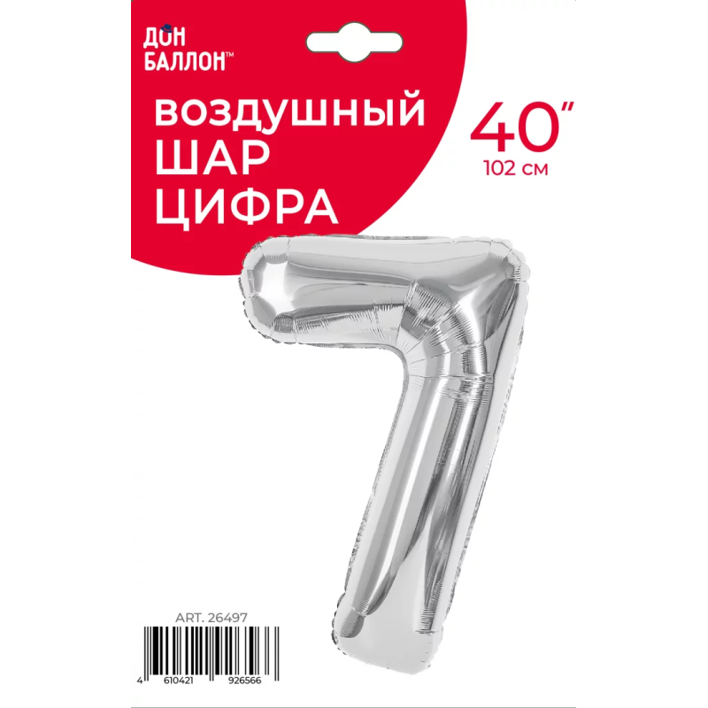 Шар (40''/102 см) Цифра, 7, Серебро, Металлик, 1 шт. в уп., 26497