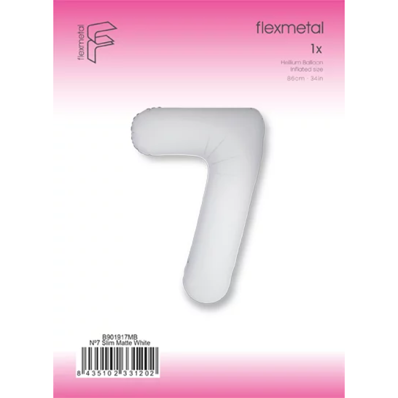 Шар (40''/102 см) Цифра, 7 Slim, Белый, Матовый, 1 шт. в уп., B901917MB