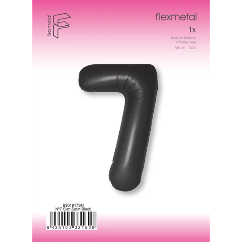 Шар (40''/102 см) Цифра, 7 Slim, Черный, Сатин, 1 шт. в уп., B901917SN