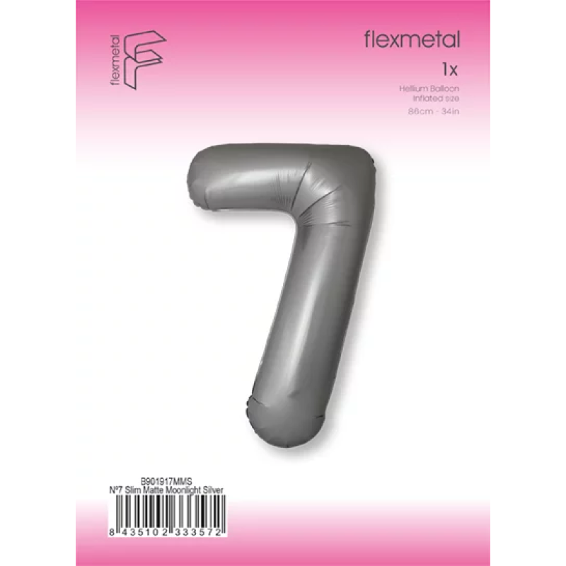 Шар (40''/102 см) Цифра, 7 Slim, Лунное Серебро, Матовый, 1 шт. в уп., B901917MMS