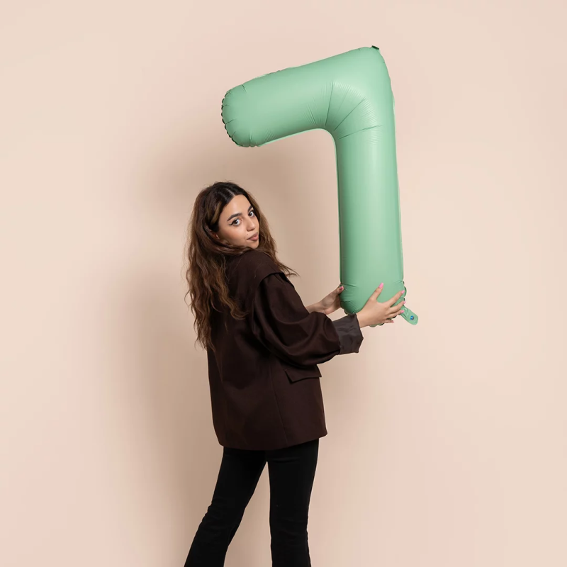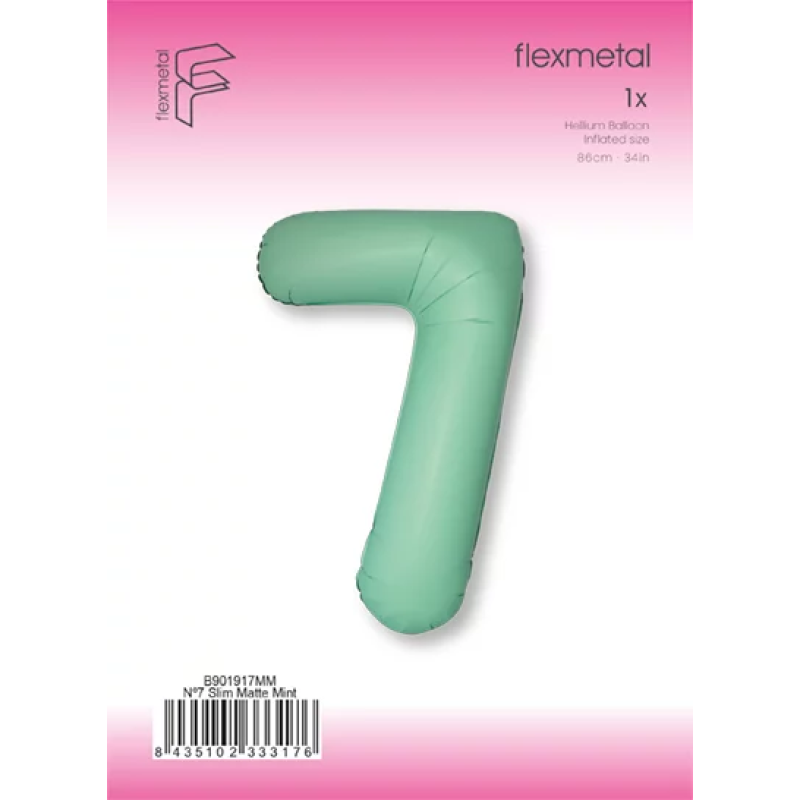 Шар (40''/102 см) Цифра, 7 Slim, Мятный, Матовый, 1 шт. в уп., B901917MM