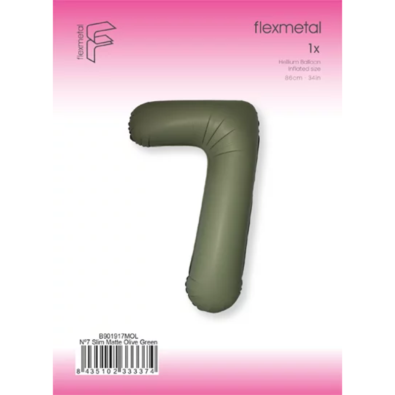 Шар (40''/102 см) Цифра, 7 Slim, Оливковый, Матовый, 1 шт. в уп., B901917MOL