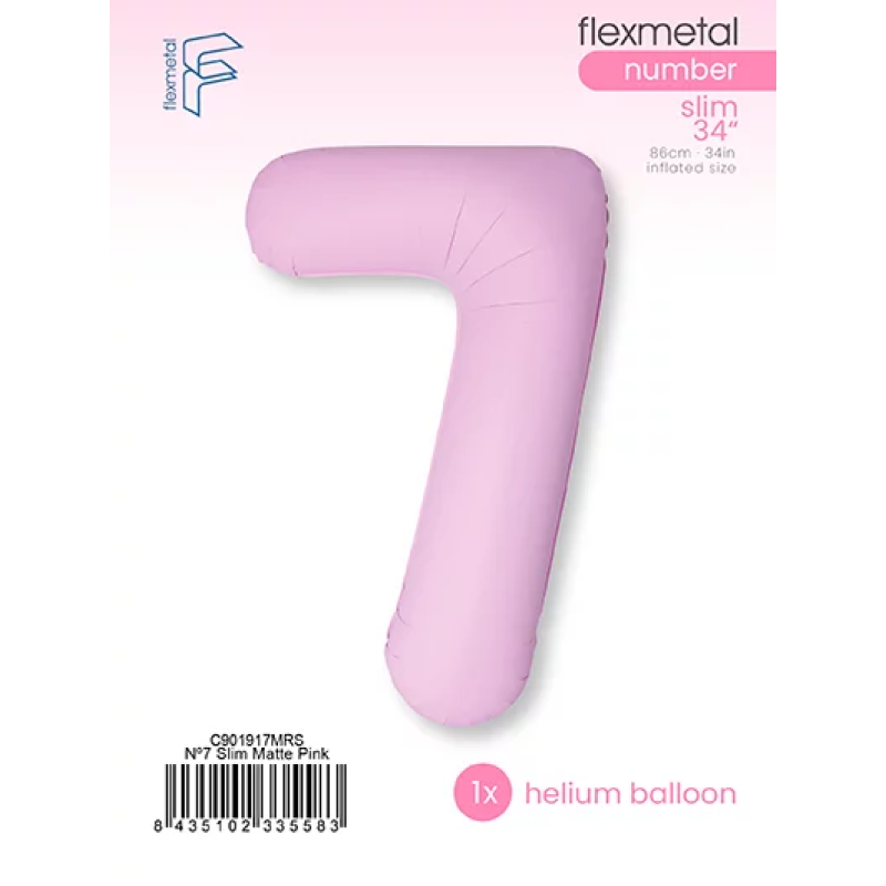 Шар (40''/102 см) Цифра, 7 Slim, Светло-розовый, Матовый, 1 шт. в уп., C901917MRS