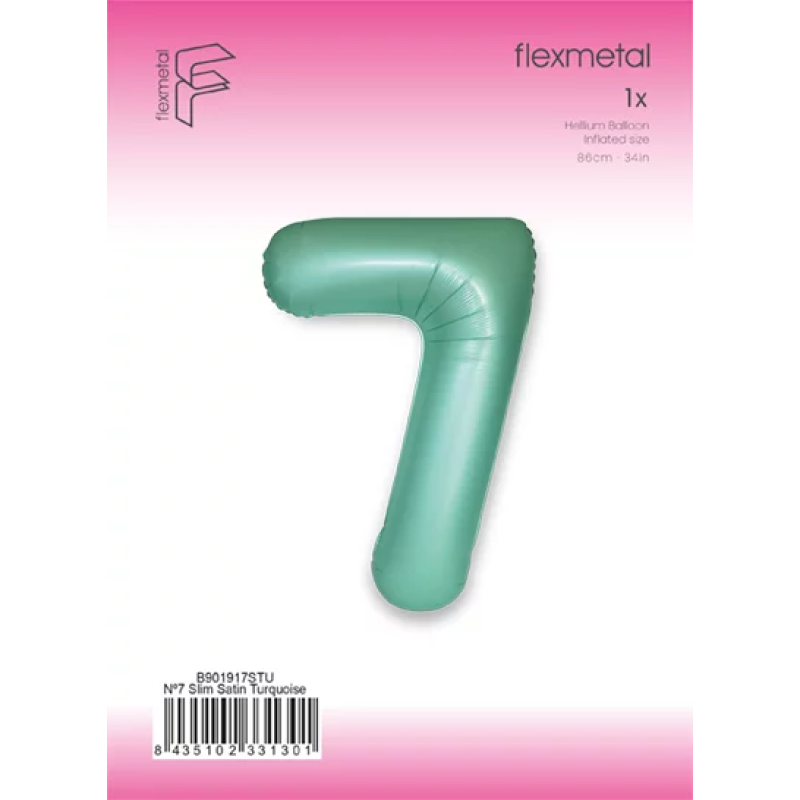 Шар (40''/102 см) Цифра, 7 Slim, Тиффани, Сатин, 1 шт. в уп., B901917STU
