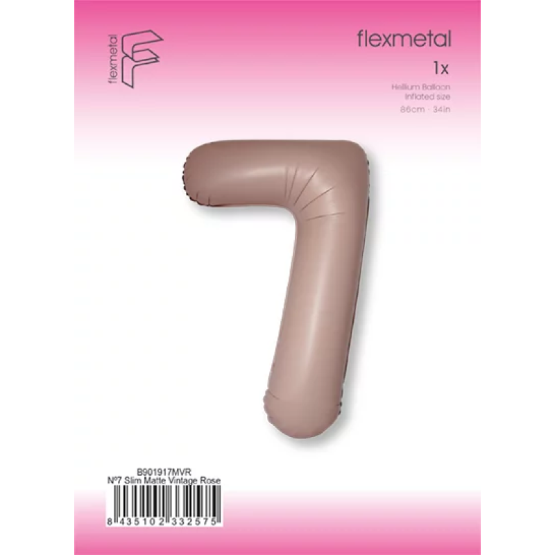 Шар (40''/102 см) Цифра, 7 Slim, Винтажная роза, Матовый, 1 шт. в уп., B901917MVR